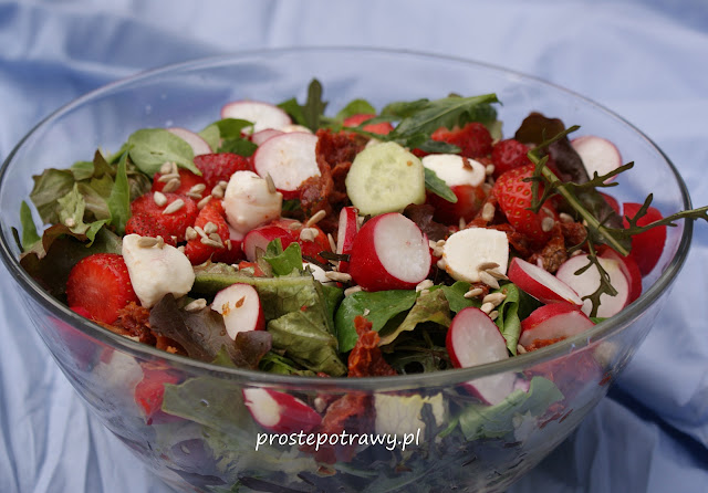 Składniki : pęczek rzodkiewek10 truskawekok.5 sztuk pomidorów suszonych w olejusałata lodowa lub…