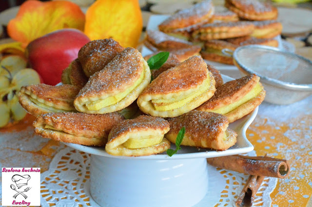 Pieczone chrupiące ciasteczka ze świeżymi jabłkami, posypane pachnącym cynamonem to moja propozycja dla fanów słodkości z królem polskich owoców.