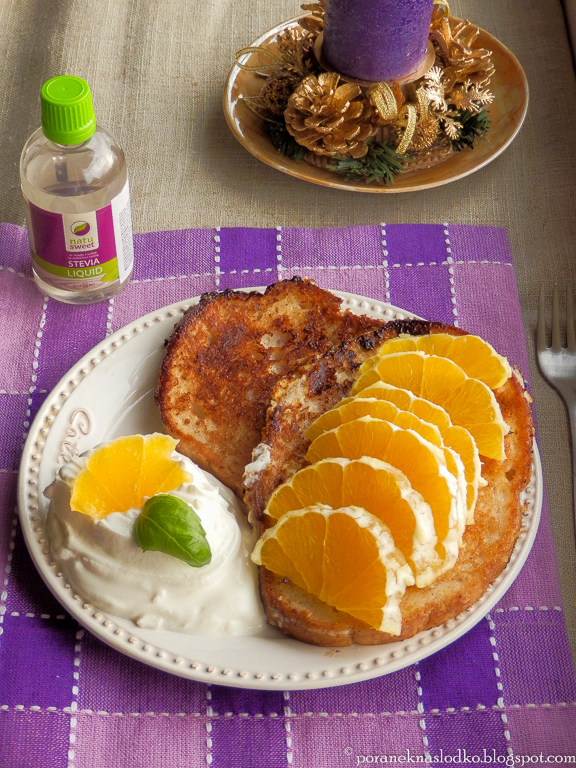 Korzenne tosty z bezglutenowego chleba dworskiego słodzone stewią w płynie* natarte świeżą…