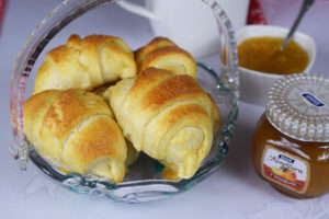 Drożdżowe rogaliki z serem oraz konfiturą z brzoskwiń