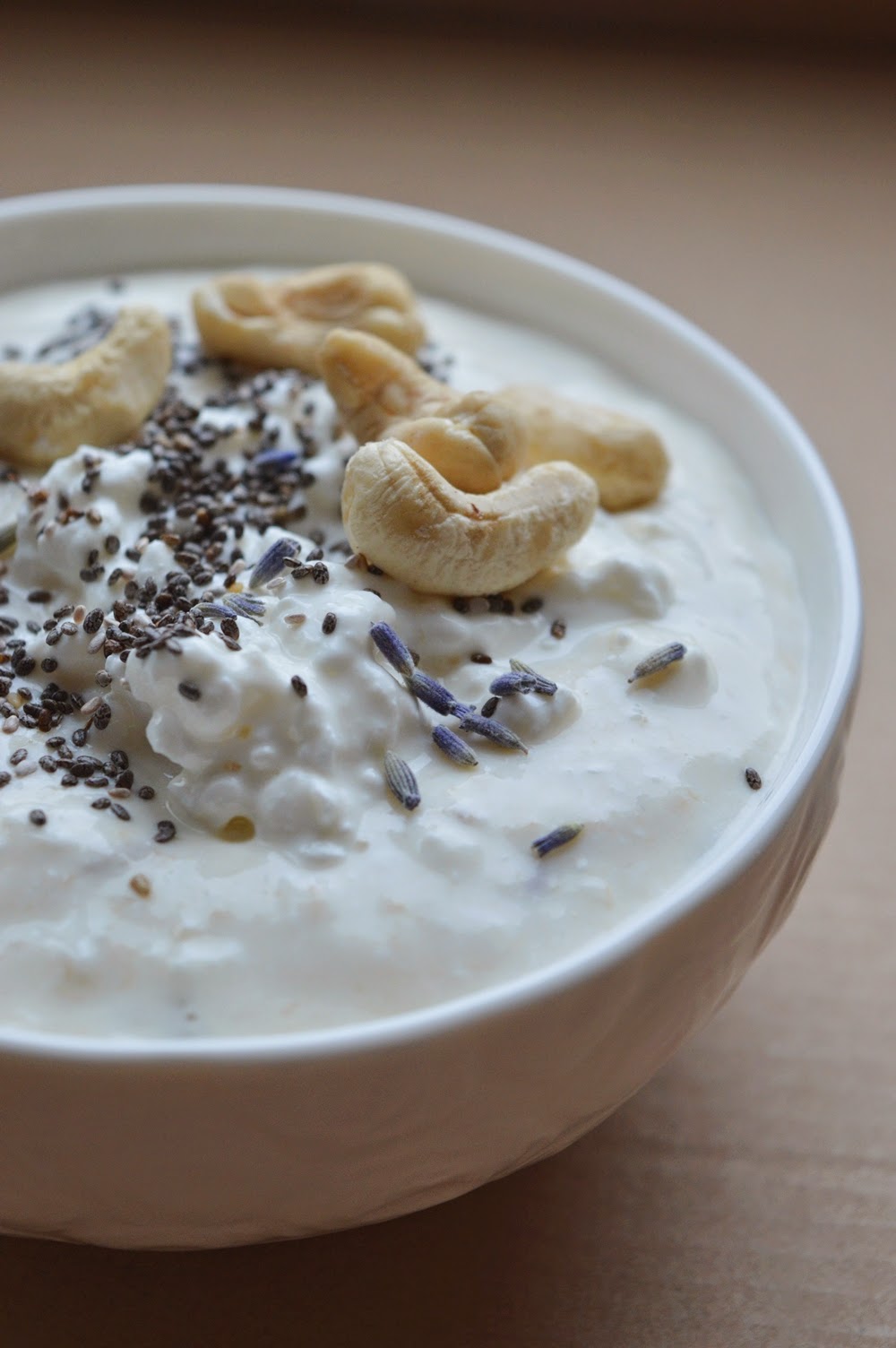 krem z serka wiejskiego z bananem, lawendą, chia, nerkowcami prosto. tak jak…