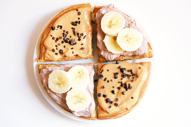 Przepyszny omlet na bazie mąki orkiszowej z nutką kokosowych smaków. Tym razem podałam go na bogato, bo jest i dużo masła orzechowego, ale także serek kakaowy. Smakuje genialnie, robiłam go w tej kombinacji już wielokrotnie i zawsze wychodzi idealny.