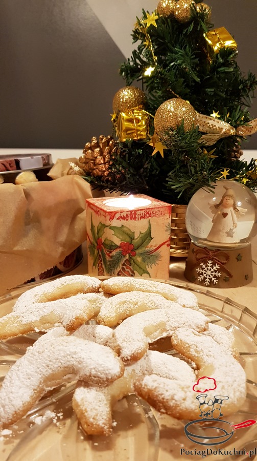 Adwentowe rogaliki migdałowo-waniliowe czyli słynne Vanillekipferl – cudowne, kruche, rozpływające się w ustach rogaliki prosto z Austrii, podobno z samego Wiednia 🙂 kilka lat temu trafiłam na nie zupełnie przypadkowo i przepadłam – nie jadłam lepszym kruchych ciasteczek. Potem były poszukiwania przepisu (głównie proporcji idealnych), a potem ileś czasu zabierałam