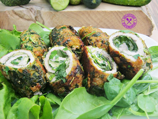 Roladki schabowe ze szpinakiem baby w pietruszkowej panierce
