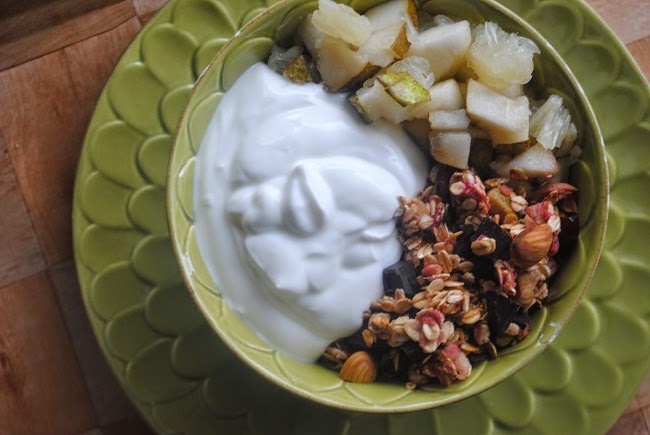 662. Rabarbarowo- klonowa granola z jogurtem, gruszką i pomelo