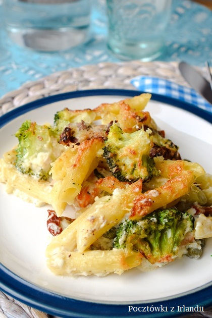 Włoska zapiekanka makaronowa z łososiem i brokułami