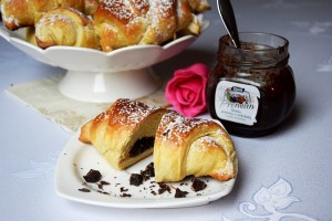 Rogaliki drożdżowe z prażoną śliwką i czekoladą