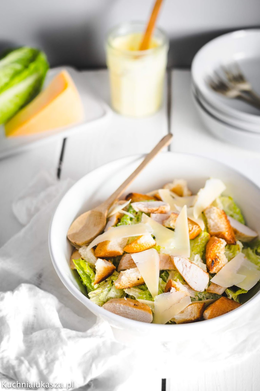 Sałatka cezar z kurczakiem to hit każdej imprezy! Zawsze robi furorę i znika momentalnie. Wcale się temu nie dziwię, bo łączy w sobie cudowne smaki: chrupiące liście sałaty rzymskiej obtoczone w sosie cezar, mięciutkie i soczyste kawałeczki piersi z kurczaka, złociste grzanki i jędrne plasterki parmezanu. Przygotowanie takiej sałatki