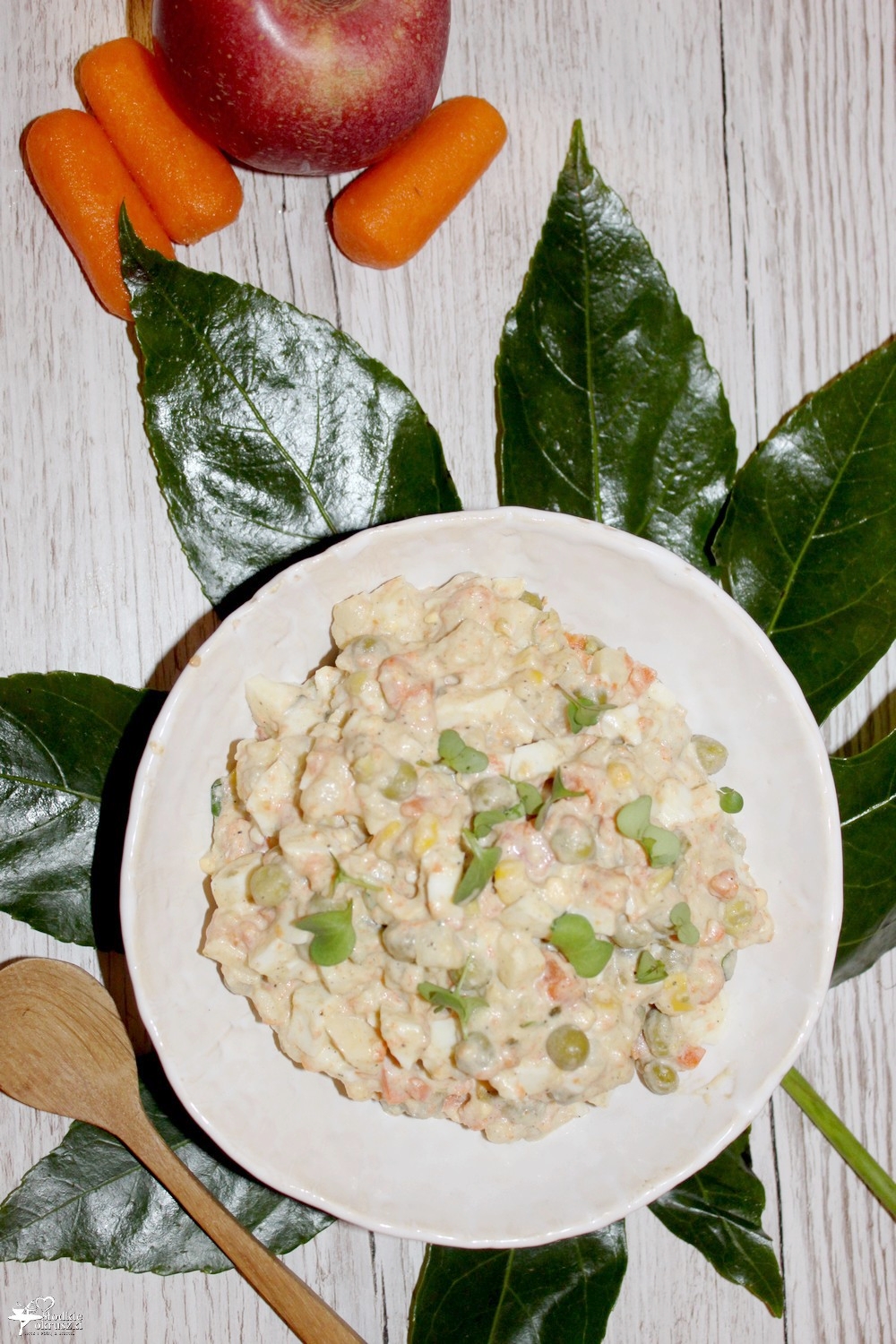 Sałatka jarzynowa z kiełkami, groszkiem i kukurydzą Nie wiem jak Wy, ale ja uwielbiam sałatki. A moja rodzina mogłaby je jeść naprawdę często. Ostatnio jednak jakoś nie było okazji na przygotowanie sałatki jarzynowej. Aż do teraz. Dzisiejsza wersja odbiega troszkę od tradycyjnej sałatki jarzynowej. No cóż, nie byłabym