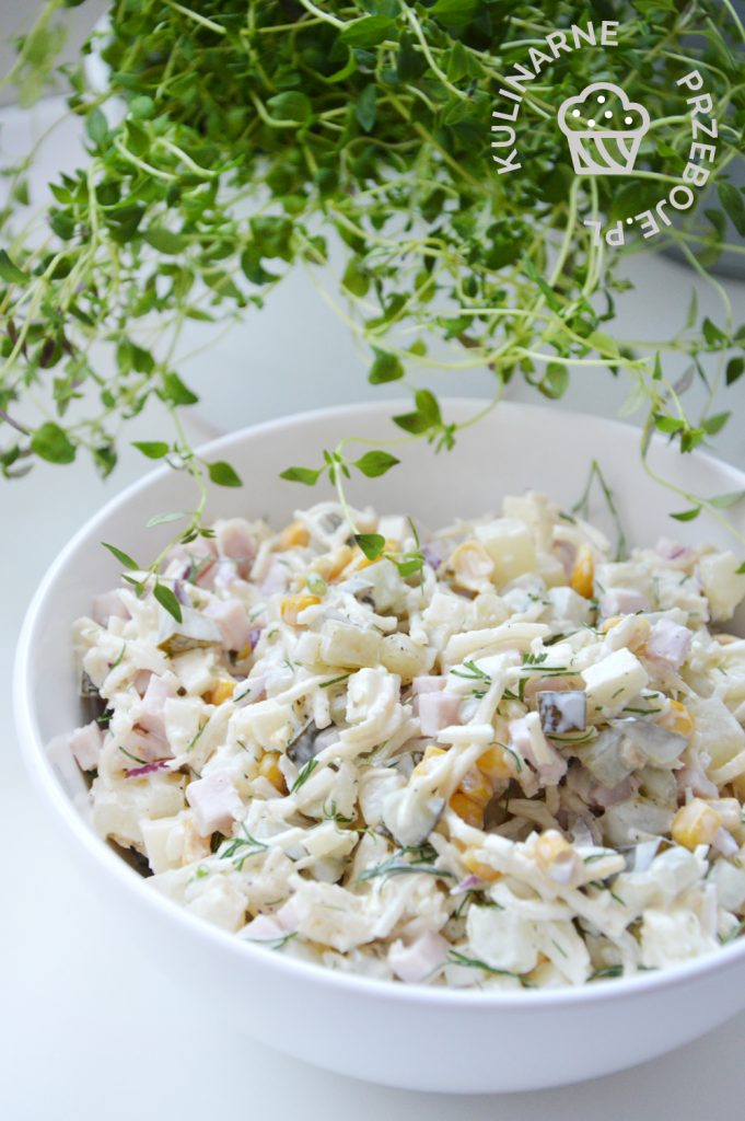 Szybka i prosta sałatka z selerem konserwowym i szynką – to jedna z tych sałatek, które robi się w ekspresowym tempie, więc polecam ją szczególnie wtedy, gdy wpadają do nas niespodziewani gości, a chcemy ich ugościć na kolację czymś więcej niż zwykłymi kanapkami 🙂