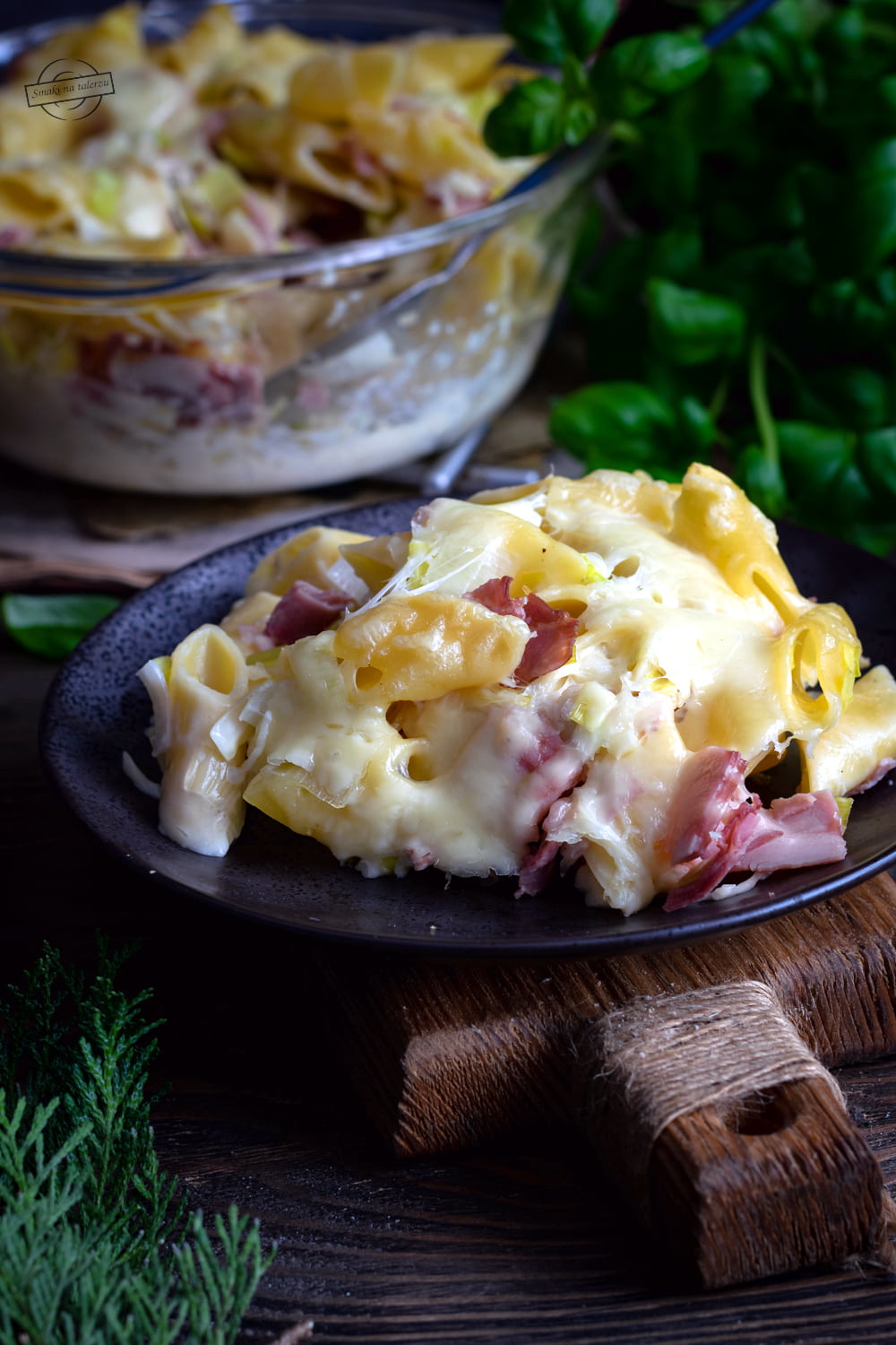 Zapiekanka makaronowa z szynką i porami