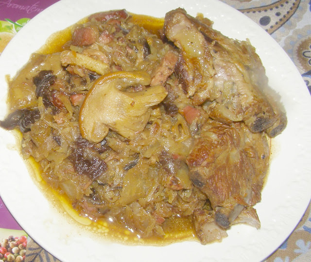 smalec 1 łyżka końcówki wędlin, boczku 1 kg, sól czosnkowa Appetita 1/2 łyżeczki, cebula 2 sztuki, ząbki czosnku 4 sztuki, przyprawa do bigosu Appetita 1 opakowanie, ziele angielskie 3 sztuki, liście laurowe 2 sztuki, śliwki suszone 100 gram, kapusta kiszona 2 kg, podgrzybki mrożone 1/2 kg,
