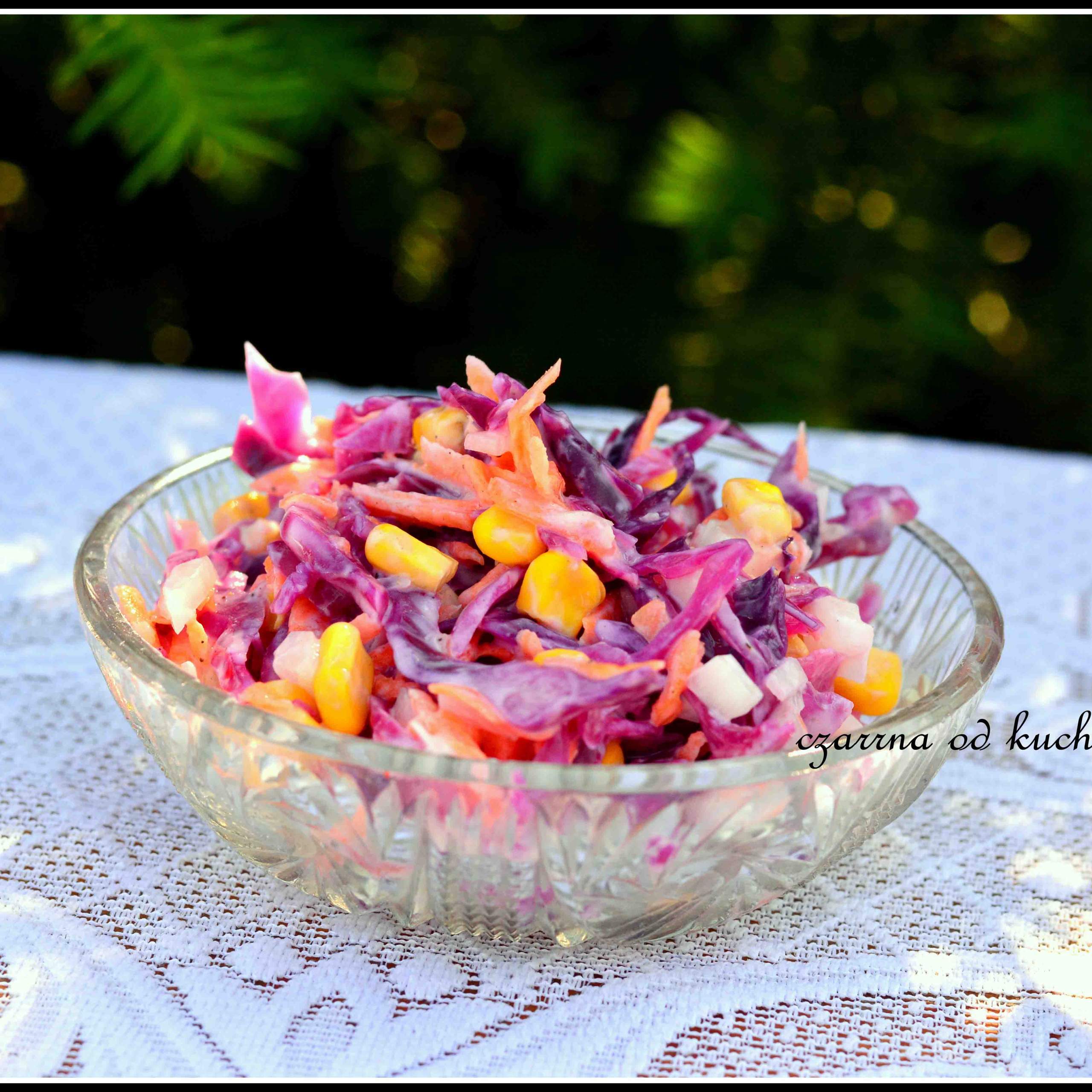 Składniki: 1/4 główki czerwonej kapusty 1/2 puszki kukurydzy 1 cebula cukrowa 1…