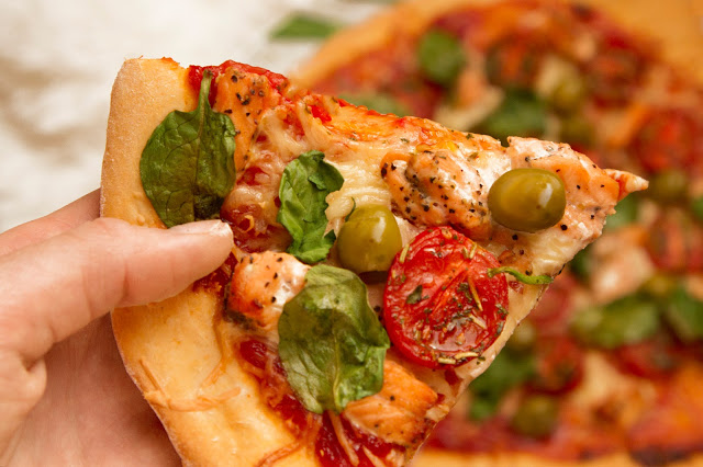 Kto ma chęć na kawałek pysznej, gorącej pizzy? Dawno żadnej nie robiłam, więc dziś postanowiłam przygotować wersję fit – z dużą porcją warzyw i łososiem zamiast mięsiwa. Ciasto do pizzy podrasowałam odrobiną wędzonej papryki – dzięki temu ma piękny kolor i zapach!