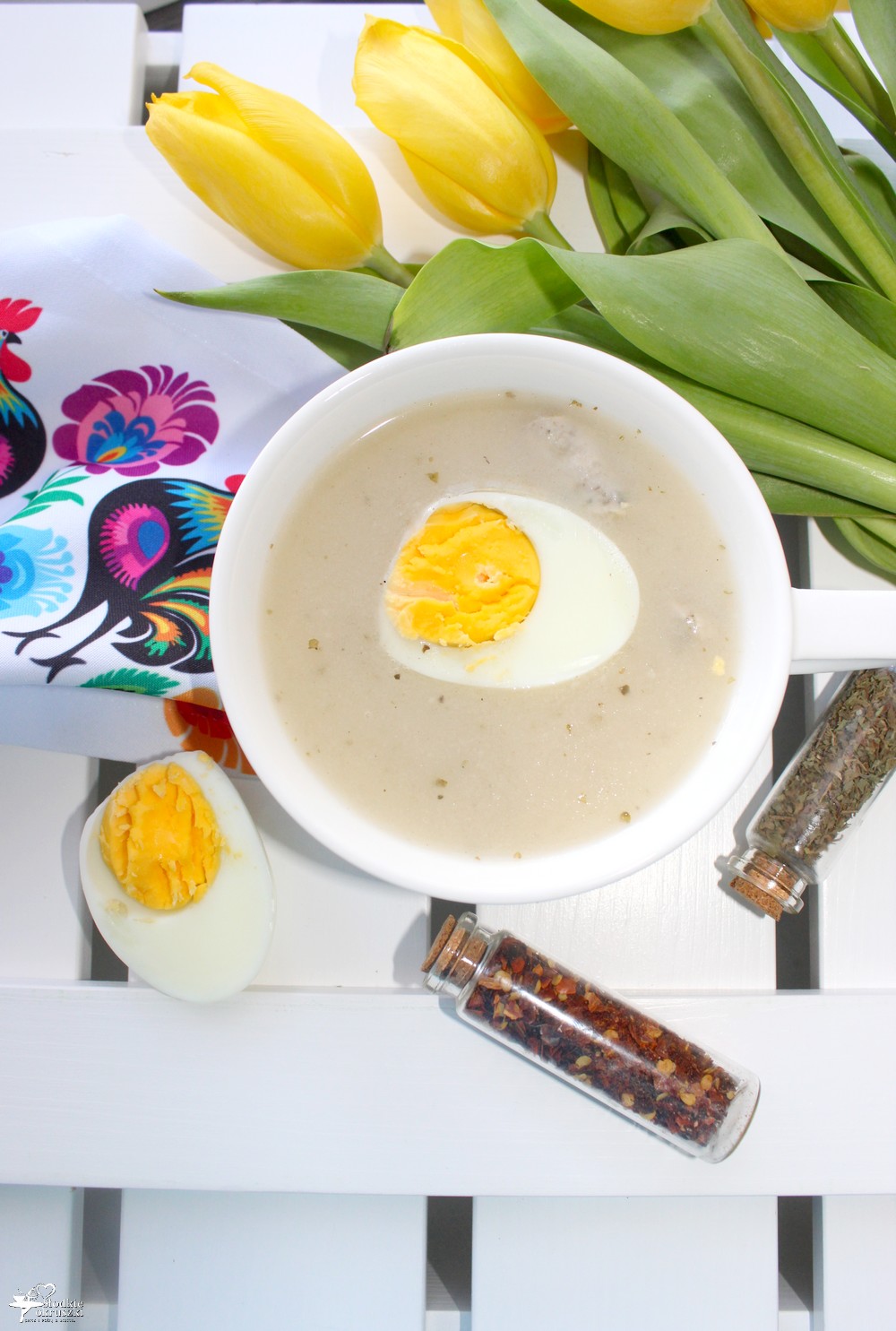 Barszcz biały na zakwasie Barszcz biały w wielu domach gości wyłącznie na wielkanocnym stole. My jednak lubimy go jeść przez okrągły rok. No może mniej w upalne letnie dni Zapewne co dom, to ciut inny przepis. Ja najczęściej przygotowuję barszcz biały na domowym zakwasie i podaję go