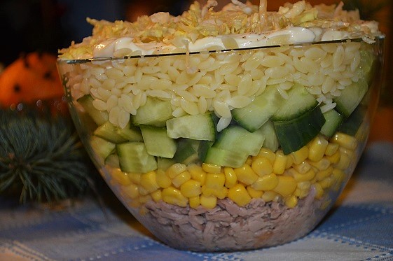 Bardzo prosta i szybka sałatka z makaronem w kształcie ryżu, pysznym tuńczykiem oraz chrupiącymi warzywami z dodatkiem majonezu. Wygląda zachwycająco, a smakuje jeszcze lepiej. Idealna na karnawał.