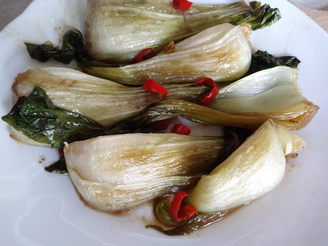 3 kapusty Pak Choi3 ząbki czosnku1 papryczka chillioliwa z oliwek/olejsól