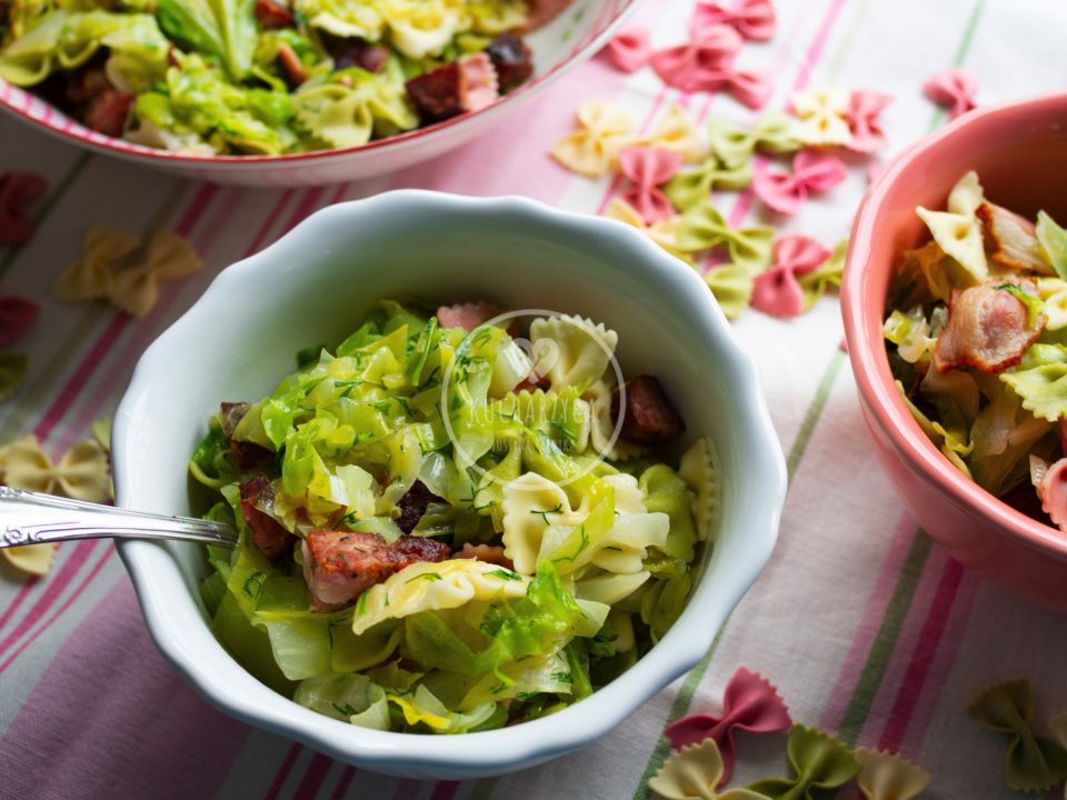 czyli makaron z młodą kapustą Prawie łazanki. Makaron kokardki, młoda kapusta, sucha…