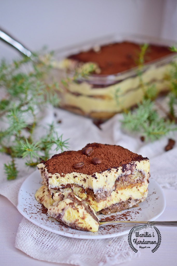 Pyszne włoskie klasyczne tiramisu wzbogacone korzenną przyprawą do piernika, aksamitne gorzko słodkie…
