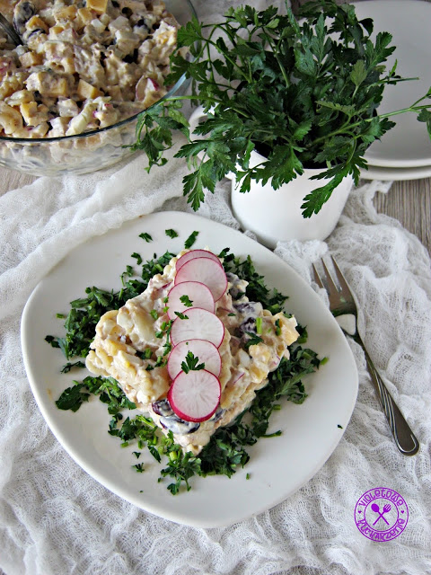 Pyszna sałatka na bazie makaronu z chrupiącymi rzodkiewkami. Smaku nadaje tuńczyk i jajka. Wszystkie składniki pasują do siebie i smakują wyśmienicie! Idealna na rodzinne imprezy.