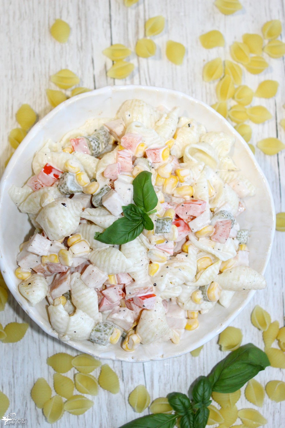 Sałatka makaronowa z wędzonym kurczakiem. Dziś polecam Wam sałatkę z makaronem, wędzonym kurczakiem i innymi dodatkami (kukurydza, ogóreczki i papryka). Pyszna, prosta i szybka sałatka, idealna na imprezy lub od tak, gdy mamy ochotę na coś dobrego. Ja uwielbiam takie połączenia, a Wy?