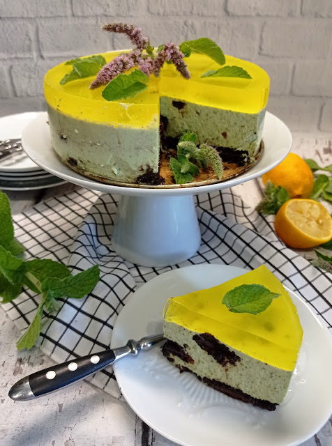 Miętowy sernik na zimno z cytrynową galaretką i ciasteczkami oreo. Pyszny, orzeźwiający…