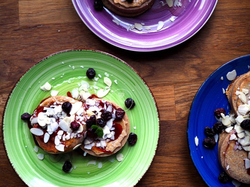 Jajka ubijamy, dodajemy maślankę, mieszamy. Suche składniki łączymy ze sobą, a następnie przesypujemy do mokrych składników. Mieszamy dokładnie i odstawiamy na chwilę, by masa związała.