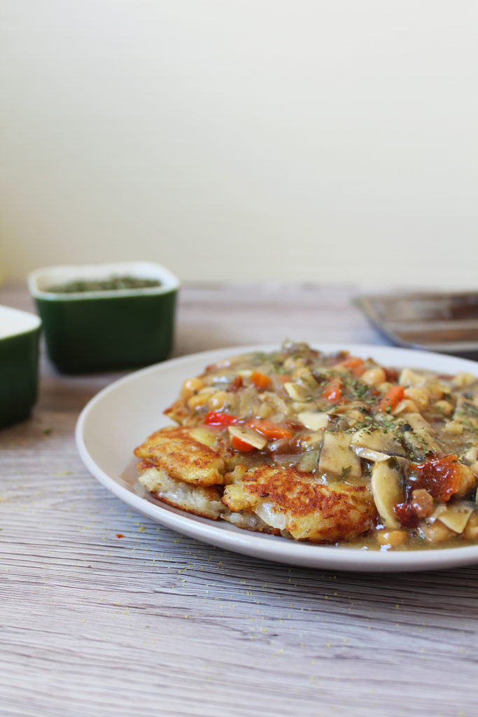 Czy Wam też bardzo często zostają ziemniaki od obiadu i nie macie pomysłu, jak je wykorzystać? Jeśli tak, to spieszę Wam z pomocą! Placki ziemniaczane z gotowanych ziemniaków to idealny pomysł na wykorzystanie ziemniaków z poprzedniego dnia. Podane z wegetariańskim sosem gulaszowym smakują jak wyśmienite placki po węgiersku