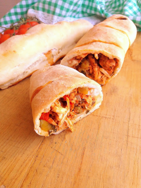 Stromboli, czyli nadziewany chlebek, to najlepszy pomysł do wykorzystania wszelkich resztek. W drożdżowym cieście możemy zamknąć kawałki ugotowanego lub pieczonego kurczaka i ulubionych warzyw. Moje stromboli powstało z części mięsa, które zostało mi po ugotowaniu rosołu. W połączeniu z podsmażonymi warzywami i aromatycznymi ziołami zupełnie odmieniło swój smak. Taki nadziewany