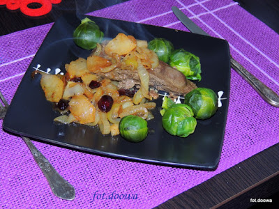 Wątróbka wieprzowa z gruszką i żurawiną