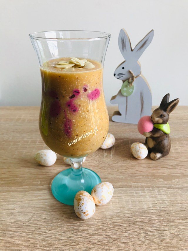 Baaaardzo lubię takie pożywne, treściwe koktajle, które zazwyczaj spożywam na drugie śniadanie. Najbardziej lubię kompozycje dwukolorowe, takie, w których jedna część jest bardzo słodka, a druga- lekko kwaskowata. Dziś postawiałam na mieszankę na bazie melona, migdałów i bananów, a dla zrównoważenia słodyczy dodałam zblendowane owoce leśne wymieszane z jogurtem