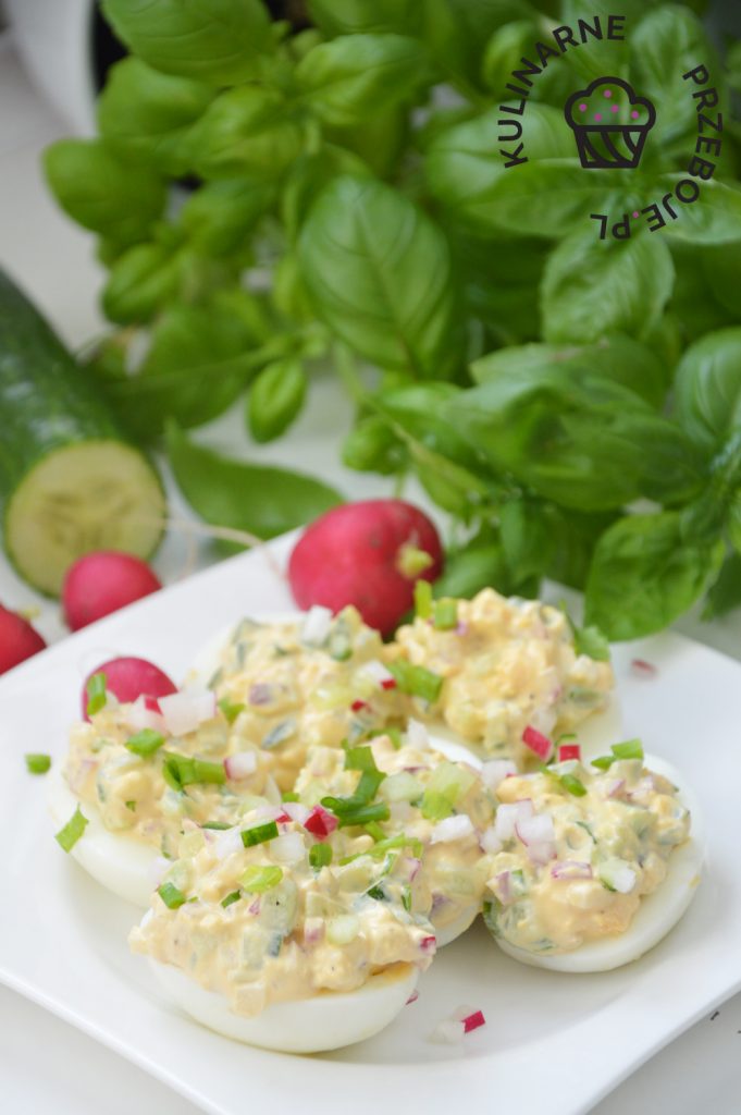 Wiosenne jajka faszerowane – to propozycja na faszerowane jajka na Wielkanoc, ale nic nie stoi na przeszkodzie, by takimi jajeczkami zajadać się nie tylko od Święta 🙂 Takie jajka nadziewane rzodkiewkami i szczypiorkiem często u nas goszczą zwłaszcza w pełni sezonu na nowalijki 🙂