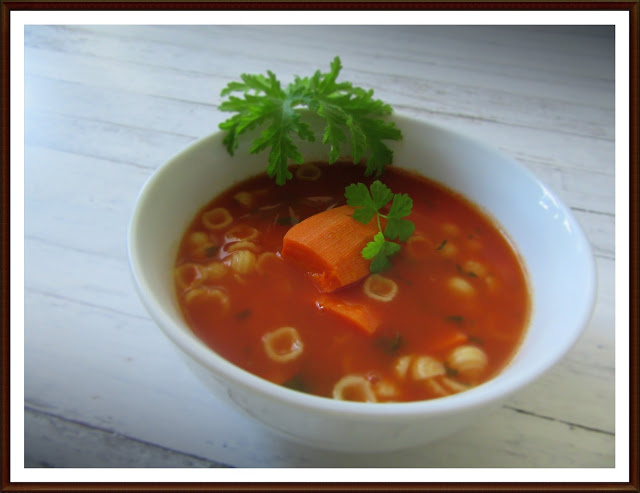 SKŁADNIKI: 1l. bulionu1 duża marchewka4-5 łyżek makaronu muszelki1 łyżka koncentratu pomidorowego (kupnego)180g…