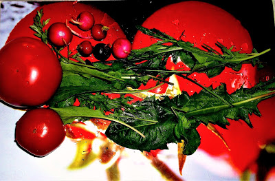 2 duże lub 3 mniejsze liście mleczakilka listków rukoli2 pomidory 8-10 rzodkiewekgarść naci pietruszkikilka