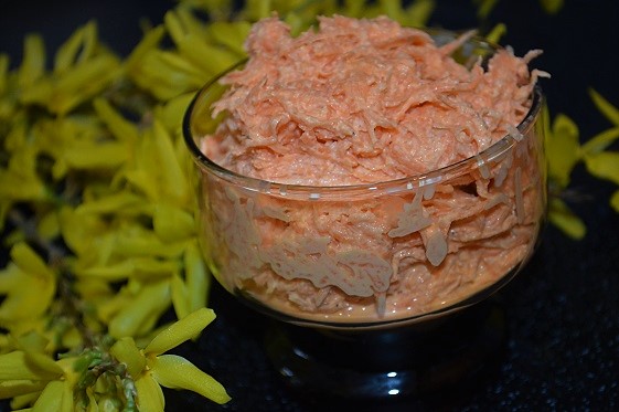 Jak sama nazwa mówi bardzo szybka, prosta i przepyszna marchewka z chrzanem. Delikatny, słodkawy smak marchewki idealnie współgra z lekko ostrawym smakiem chrzanu. Surówka idealna do obiadu, ale ja również polecam ją do wędliny, czy pieczonego mięsa na kanapkę, idealnie podkreśla ich smak.