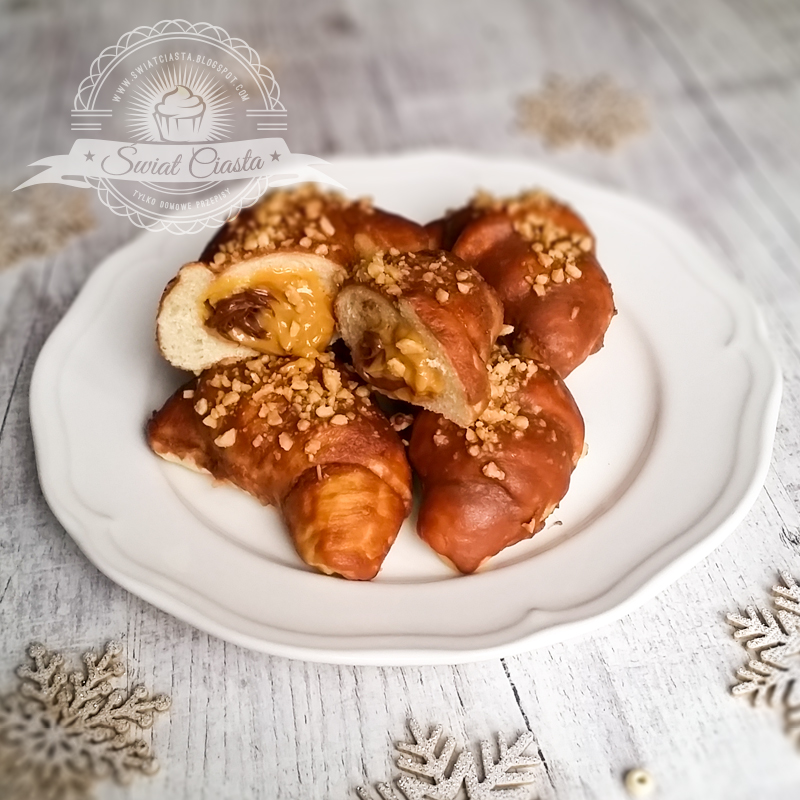 Dziś zaproponuję przepyszne, drożdżowe i mięciutkie rogaliki z nadzieniem z kremu czekoladowego,…