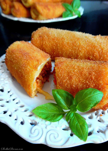 Krokiety z mięsem mielonym w sosie pomidorowym i zapieczonym serem to smakowite,…