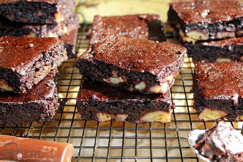 Jeśli lubicie banany, czekoladę i wilgotne ciasta to mam dla Was przepyszną propozycję…Mocno bananowe brownie z kawałkami roztapiającej się w ustach czekolady!Ciasto kusi zapachem już podczas przygotowania, a w trakcie pieczenia sprawia, że nie można doczekać się efektu.Dodatkowo nie zawiera cukru, glutenu, ani tłuszczu,