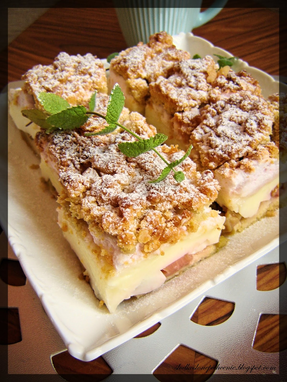 Idealnie kruche ciasto z dodatkiem rabarbaru, budyniu i malinowej pianki. Nie za…