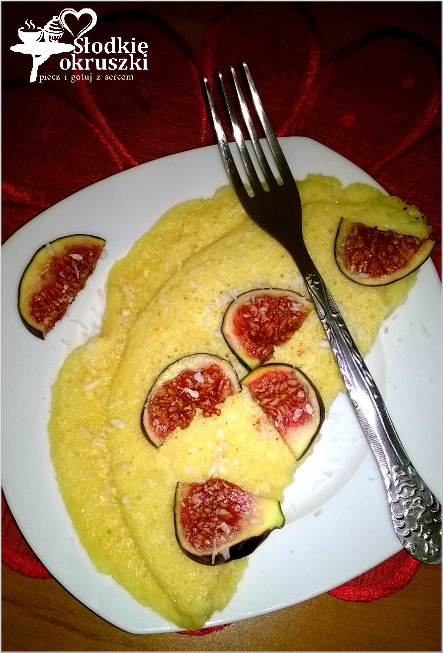 2 jaja2 łyżki erytrytolu1 łyżka oleju rzepakowego6 łyżek mąki pszennej pełnoziarnistej 1/4 łyżeczki proszku do pieczeniaszczypta cynamonuaromat5 sztuk suszonych figSposób przygotowania:Jaja ucieramy z erytrytolem na puszystą masę. Następnie dodajemy pozostałe składniki, oprócz fig.