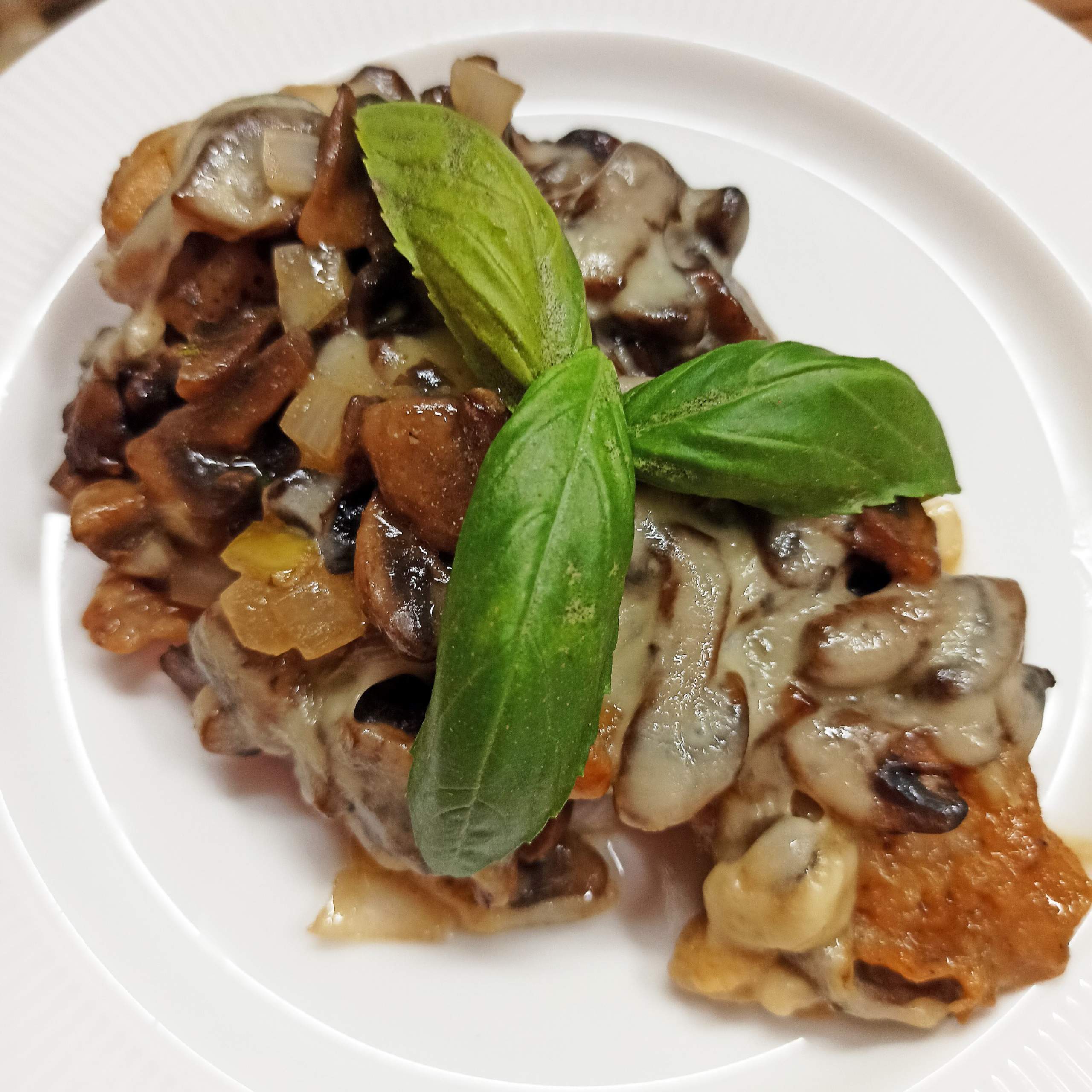 Pierś z kurczaka zapiekana z pieczarkami i serem żółtym