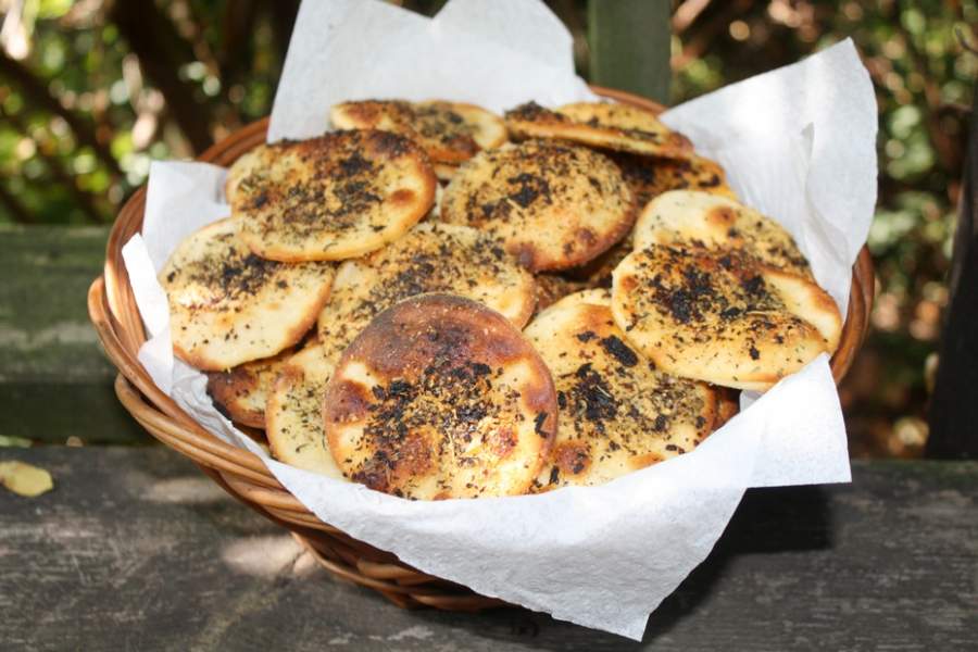 200g mąki razowej typ 2000350g mąki pszennej30g świeżych drożdży1 łyżeczki cukru1 płaska łyżeczka soli morskiej1 łyżka oliwy 370ml ciepłej wody100g ziaren słonecznika30g sezammasło do wysmarowania