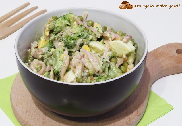 Bardzo prosta i bardzo smaczna sałatka z brokułem, szynką, jajkiem gotowanym, groszkiem…