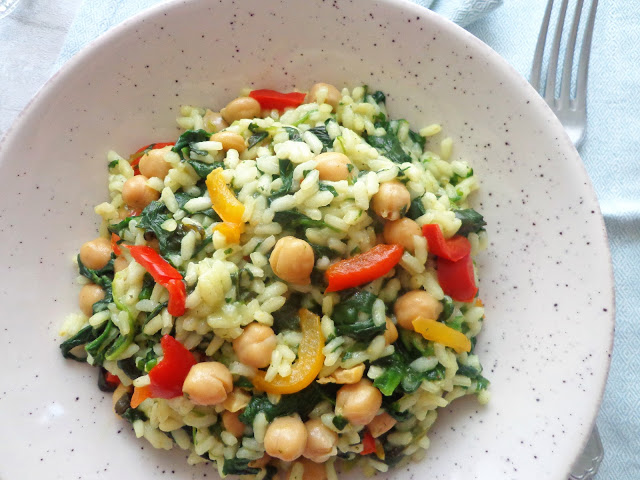 Risotto ze szpinakiem, papryką i ciecierzycą (Risotto con spinaci, peperoni e ceci)