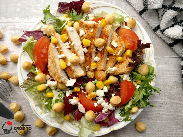 Uwielbiam tego typu sałatki, na talerzu musi być pysznie, zdrowo i kolorowo. Staram się eksperymentować z dodatkami do mixu sałat. Tym razem postawiłam na grillowaną pierś z indyka, ser feta iii… groszek ptysiowy. Sałatka okazała się bardzo smaczna i pożywna, w sam raz na lekką kolację. Tak przygotowaną sałatkę można