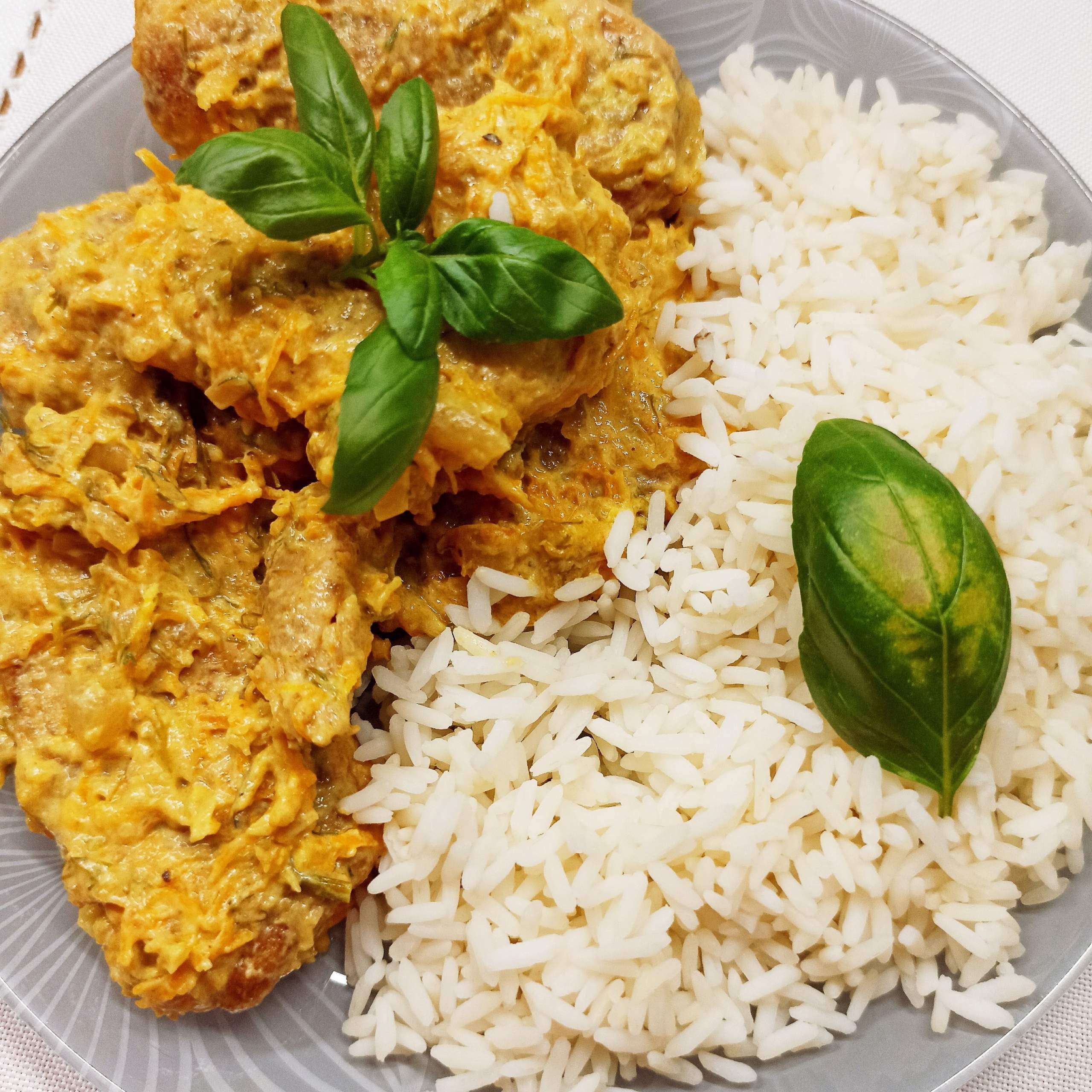 Piersi z kurczaka w kremowym, śmietankowym sosie z dodatkiem marchewki, cukinii i…