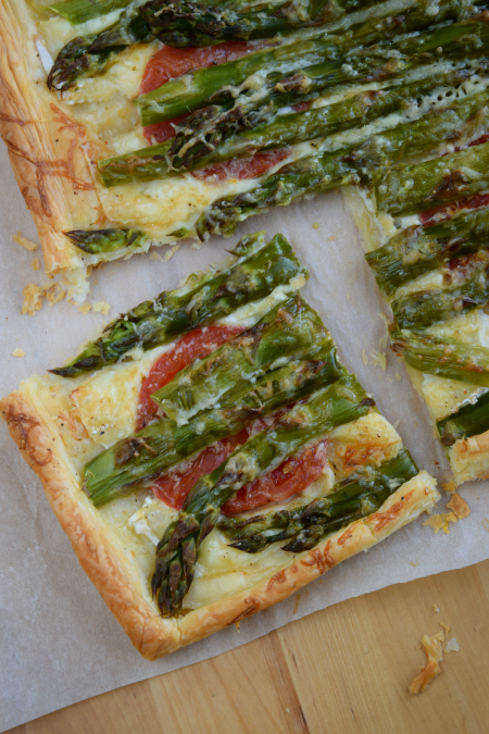 Za krótką listą składników tej tarty idzie pyszny smak i prostota wykonania. Szparagi to wspaniałe warzywo, którym należy się cieszyć póki trwa sezon, świetnie komponują się z serem, w tym wypadku z delikatnym, kremowym brie i słonym parmezanem. Ta chrupiąca tarta to obowiązkowa pozycja tej wiosny.