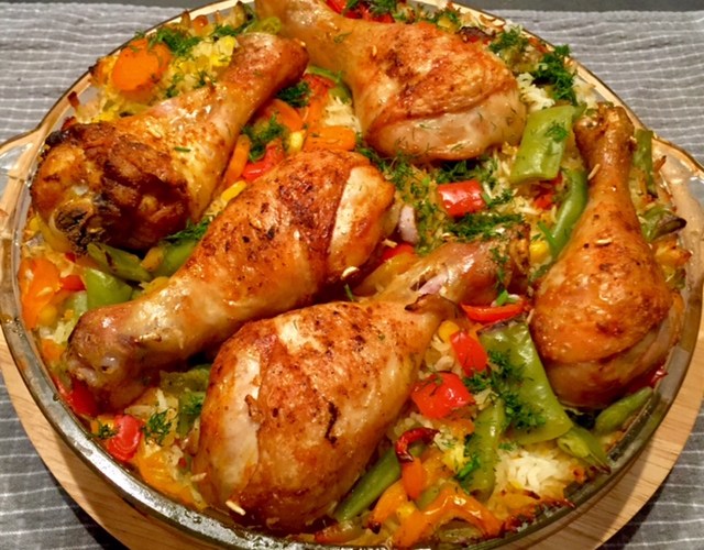 Kurczak zapiekany z ryżem i warzywami