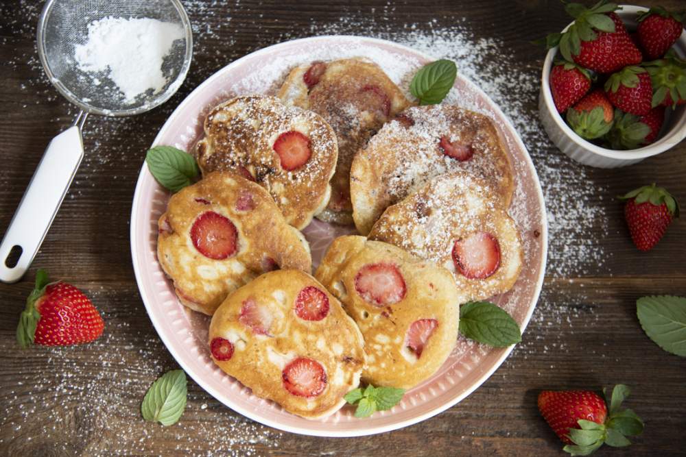 Szukasz przepisu na pyszne, majowe śniadanie? Polecam Ci wypróbować placki jogurtowe z truskawkami. Korzystaj z sezonu na truskawki ile wlezie! Placuszki jogurtowe są puchate, mięciutkie i delikatne w smaku. Z dodatkiem truskawek pokrojonych w plasterki są jeszcze smaczniejsze. Dużo zależy od tego czy owoce są soczyste i słodkie, wtedy smakują