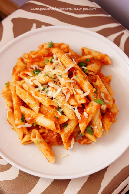 Składniki:– 1 puszka krojonych pomidorów– 1 mała cebula– 1-2 ząbki czosnku– kilka…